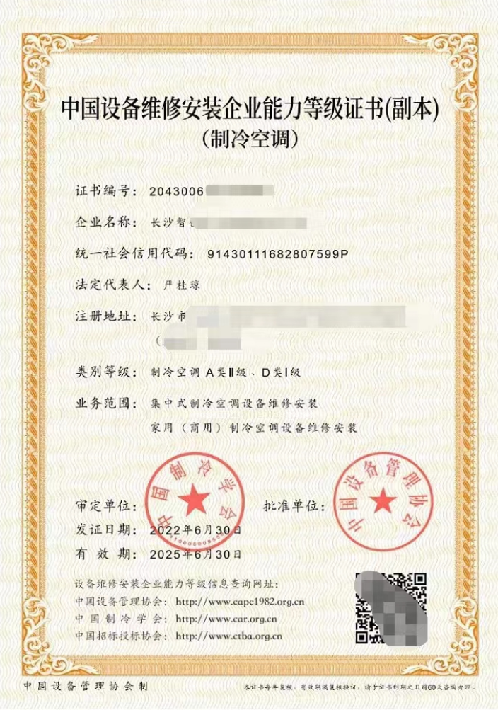 2. 资质审批部门:中国制冷空调工业协会