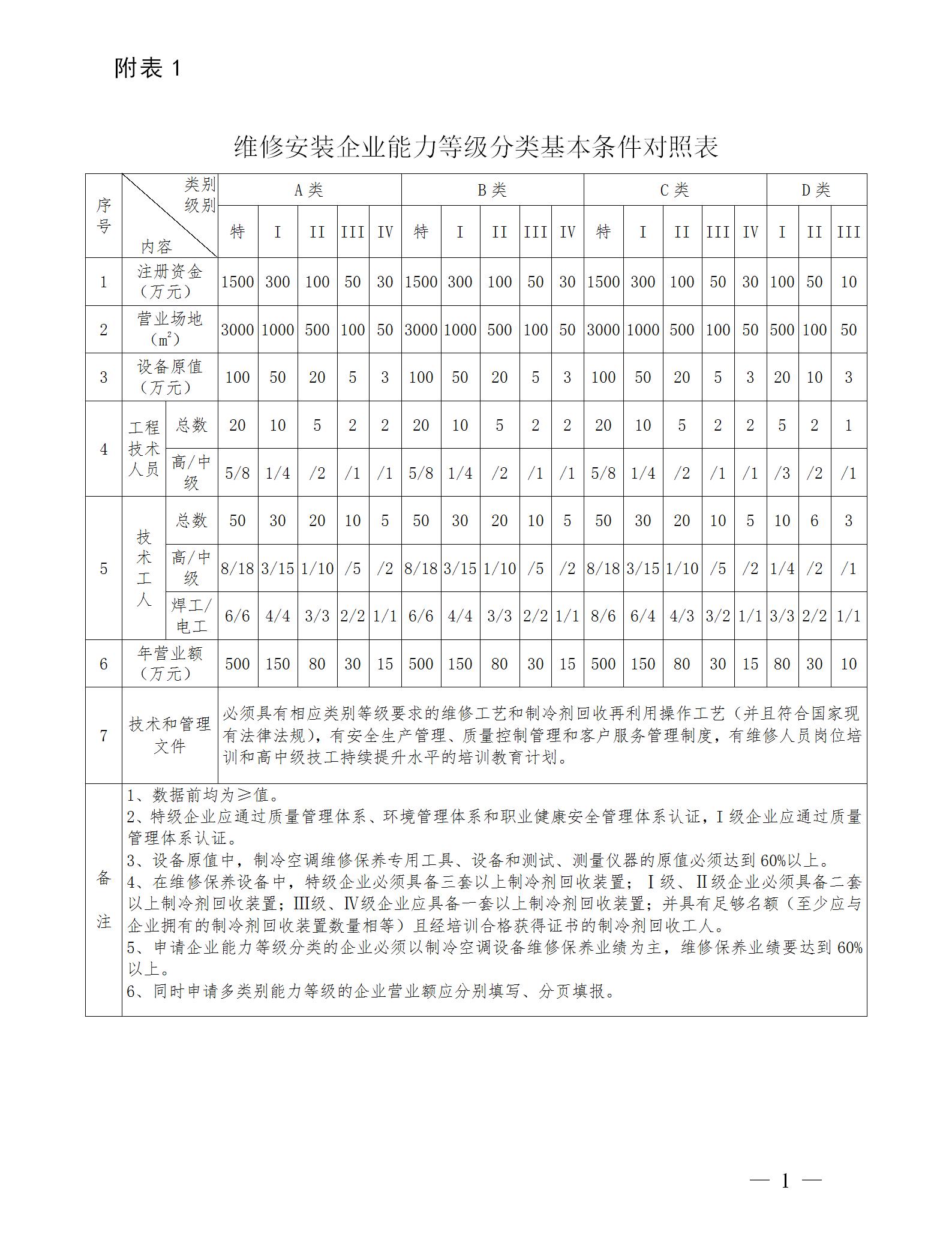 IV 级:能独立承担 30 吨(含)以上冷冻冷藏库及系统设备的维修安装。