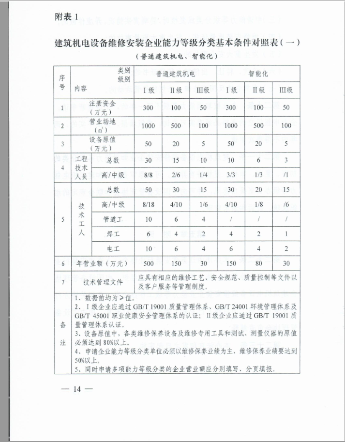 设备维修安装企业能力等级(通用类、专业类、咨询类)