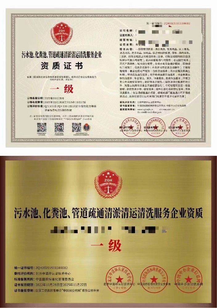 二次供水设施清洗服务企业资质证书